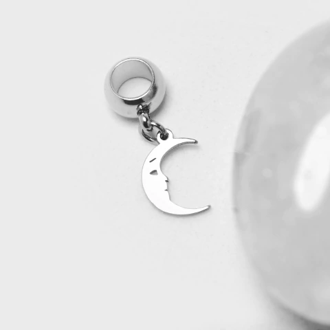 Perfeito para quem ama joias com significado, este pingente traz a beleza da lua em acabamento de inox sofisticado. Ideal para compor sua pulseira ou colar com um toque místico e elegante.